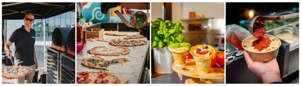 Kies voor de traditionele pizza’s uit authentieke Italiaanse houtovens van Attorno , Dolcetto, of ga voor een leuke variant met Pizzahoorntjes. Liever pasta op het menu? Nodig Pasta Tomodoro uit en schuif samen met je gasten aan aan de gezellige pastatafel.