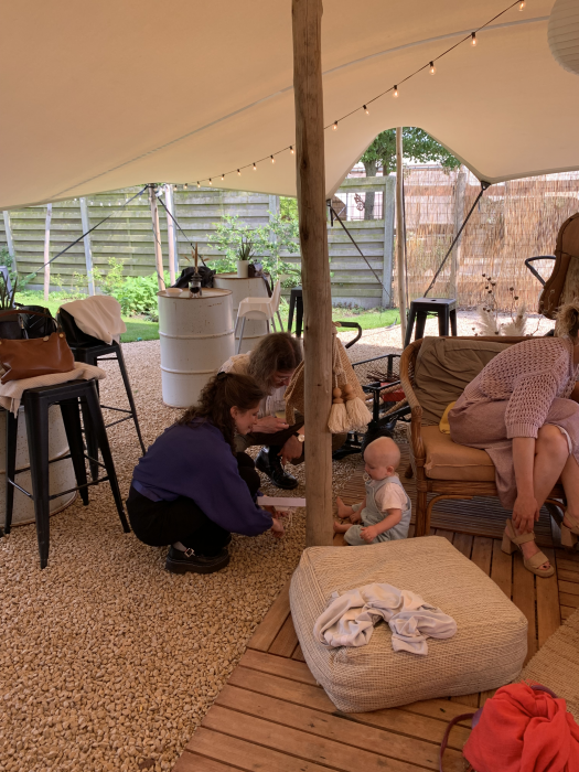 Onze gezellige buitenbar met stretchtent, ingerichte toog én vuurgrond is een buitengewone locatie voor je outdoor evenement. De kinderen spelen in onze speeltuintjes, op de springstenen in onze wadi, in de wilgentunnel of op onze uitgestrekte vuurgrond terwijl jij geniet van het buiten zijn samen met je gasten. Of wat denk je van een sfeervolle outdoor meeting met jouw bedrijf of team? Er kunnen 70 personen onder de stretchtent.