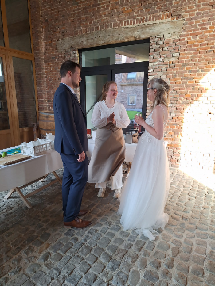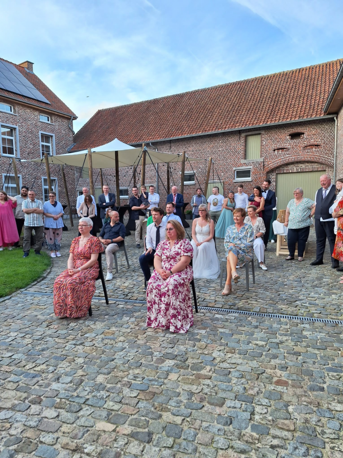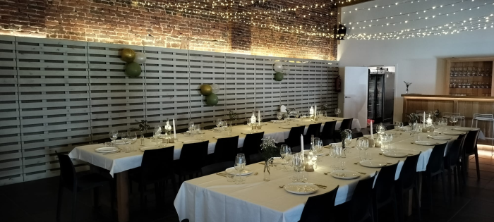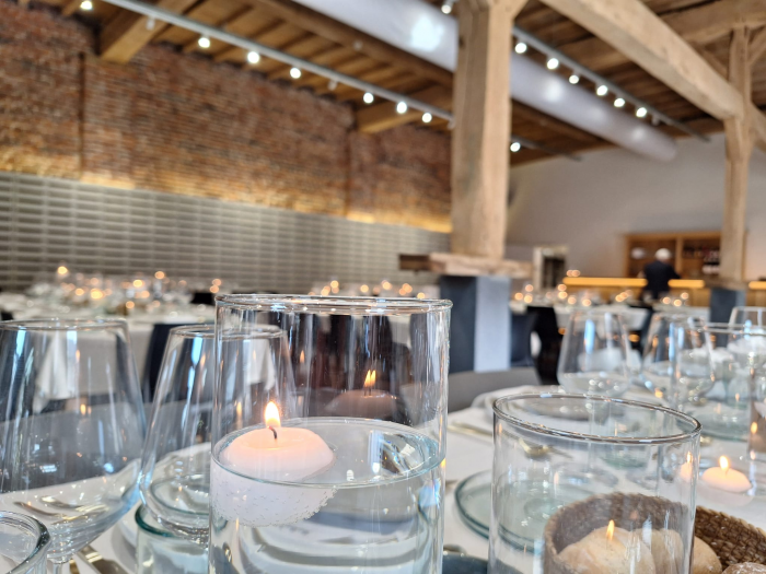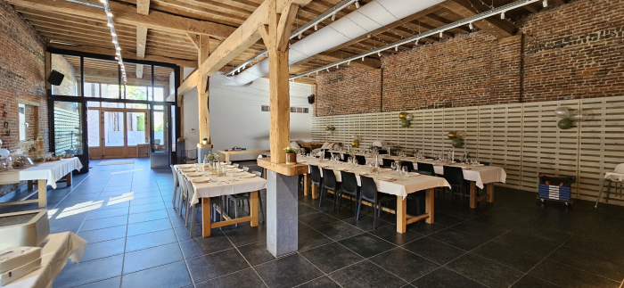 Geniet van een aperitief op onze gezellige binnenkoer en laat je betoveren door de unieke sfeer van onze 18e-eeuwse schuur. De authentieke houten balken, hoge plafonds en rustieke details maken deze ruimte tot een warme en stijlvolle setting voor elk event.